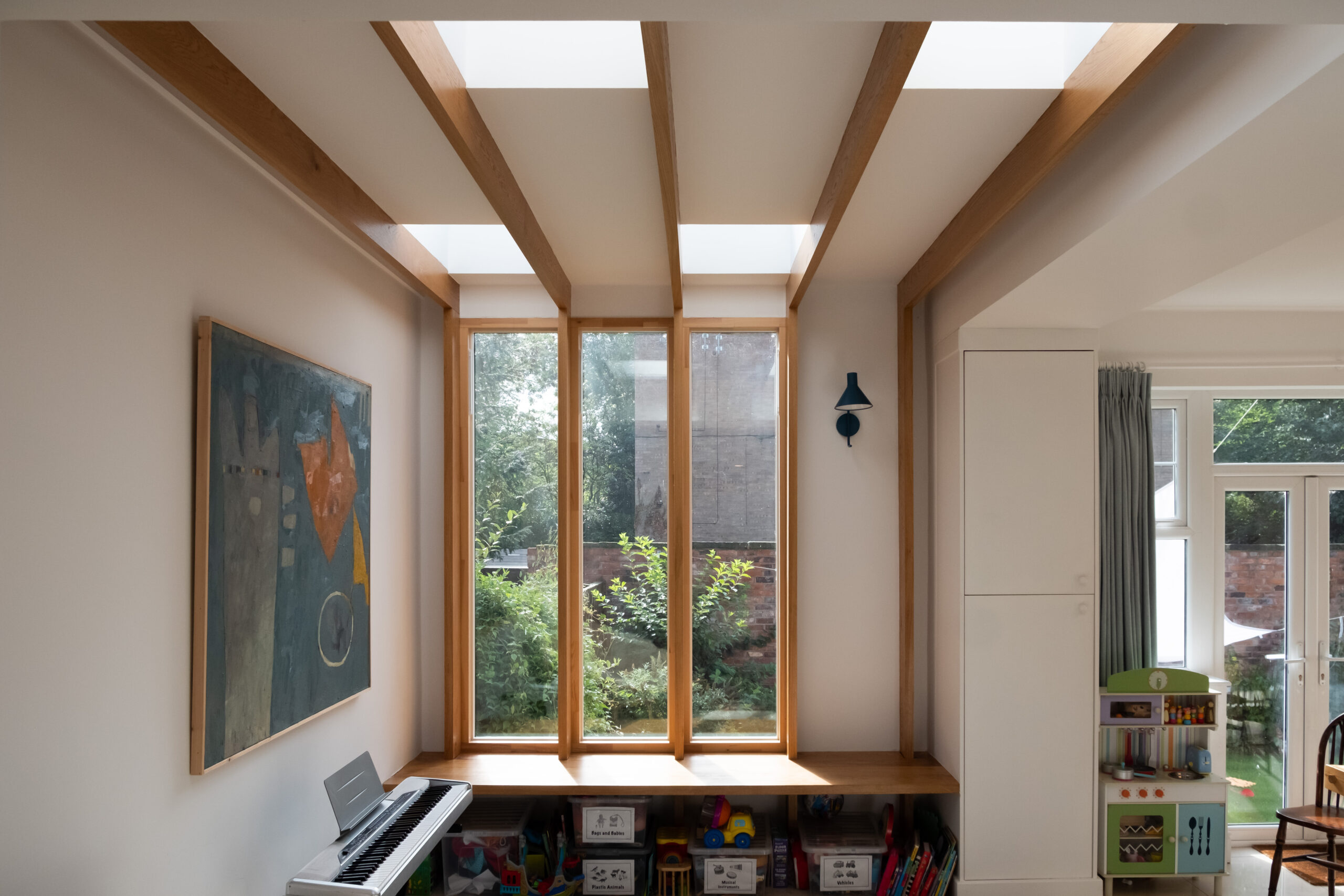 Claire Bandy designed a modern extension for Park Grove, Manchester, using Roofglaze Flat Glass Rooflights. This beautifully sunlit, family-focused space is the result.