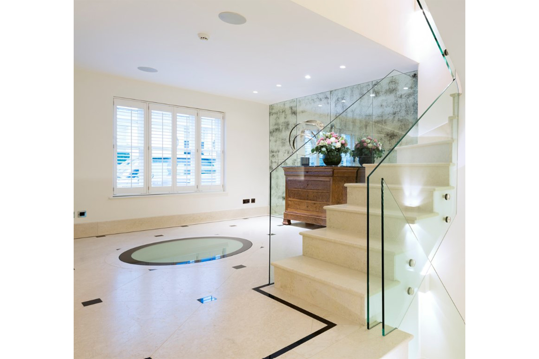 Internal Walk On Glass is used to transform dark spaces by flooding light through the levels of a property.