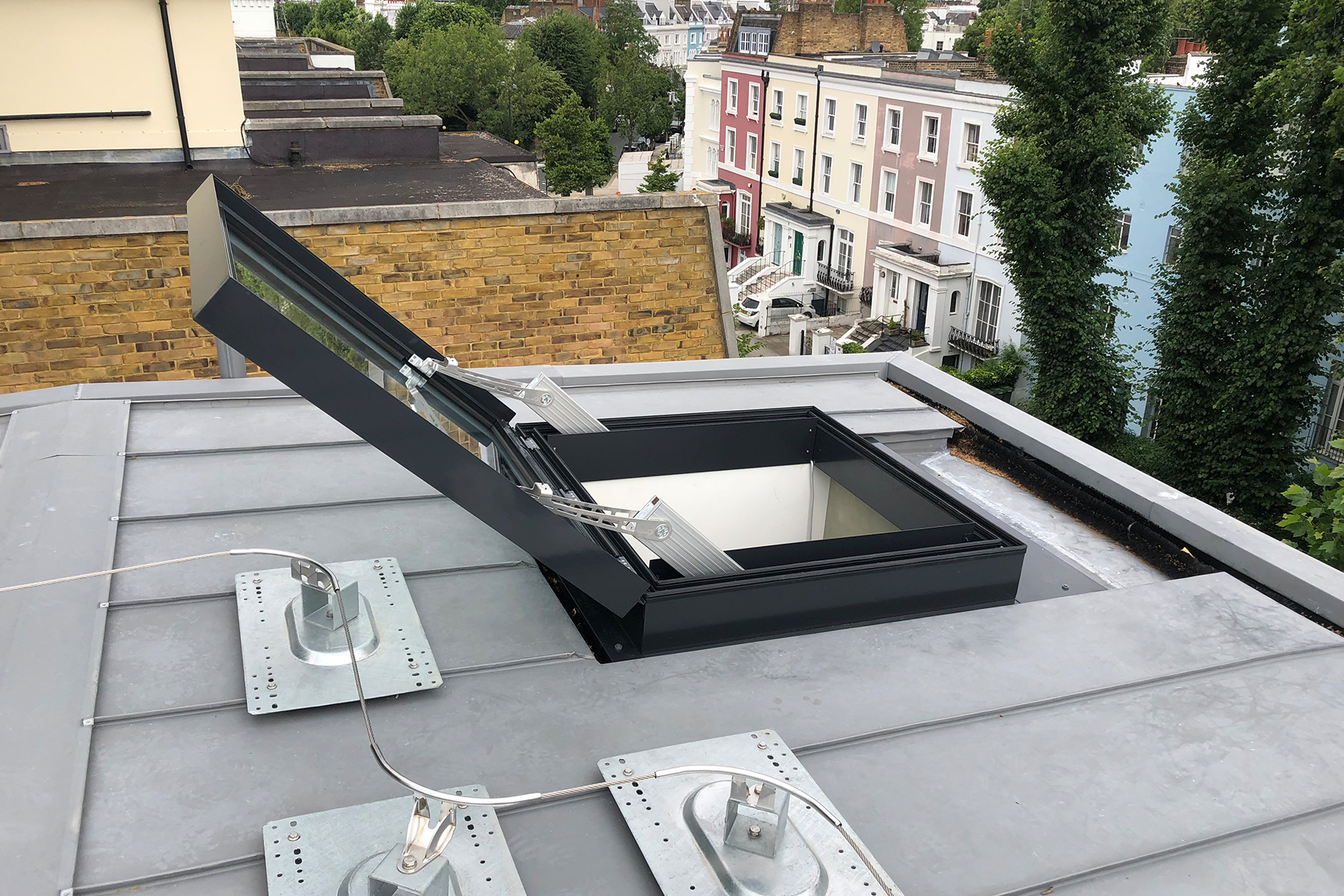 The rooflight will open automatically to 140°, when triggered by a fire alarm or building management system